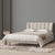 White Boucle Upholstery: The bed frame is upholstered in soft, textured white boucle fabric, offering a chic and contemporary look while being comfortable and easy to maintain.