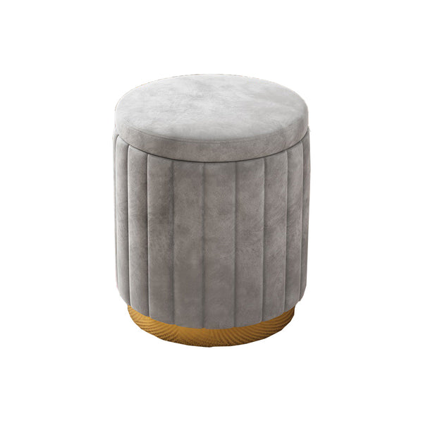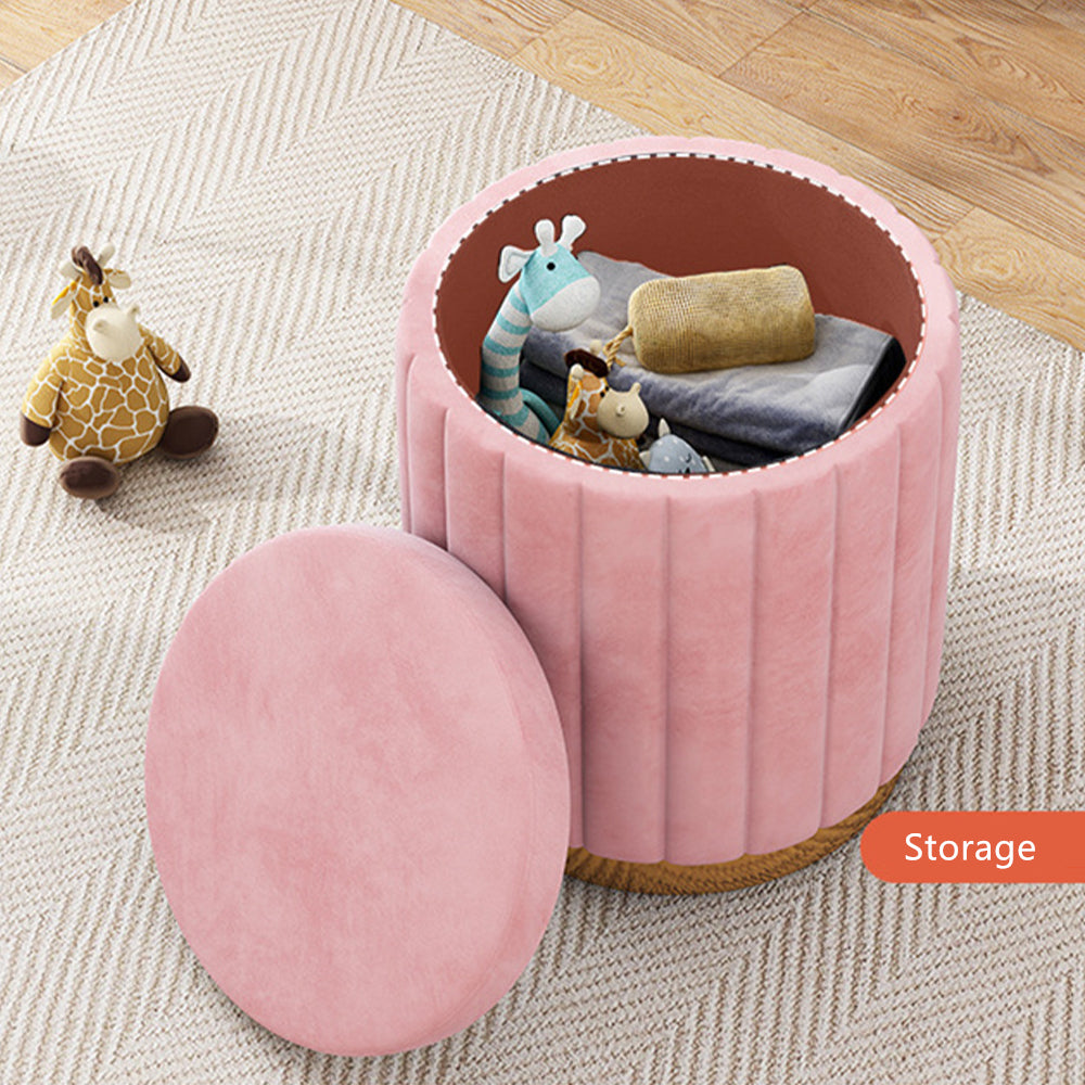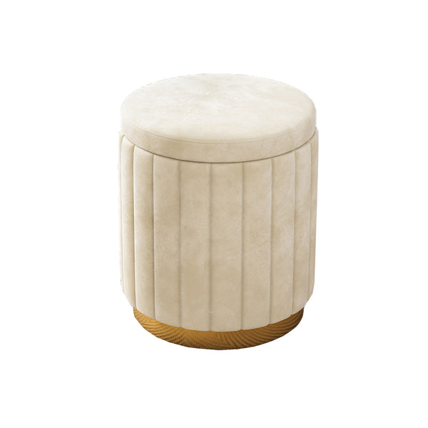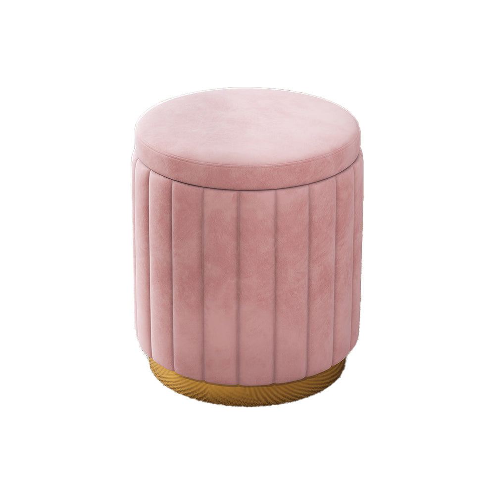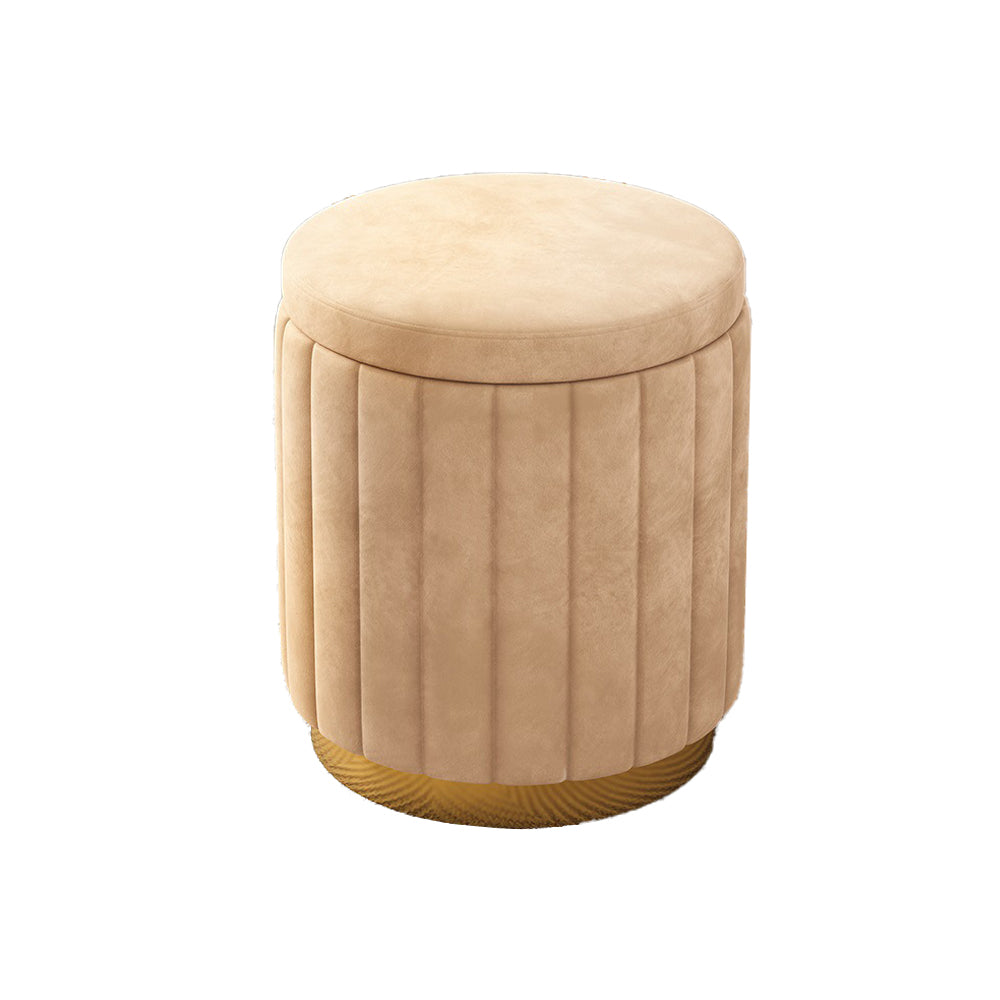 Jocelyn Flannelette Round Ottoman Storage Vanity Stool in Multi-color