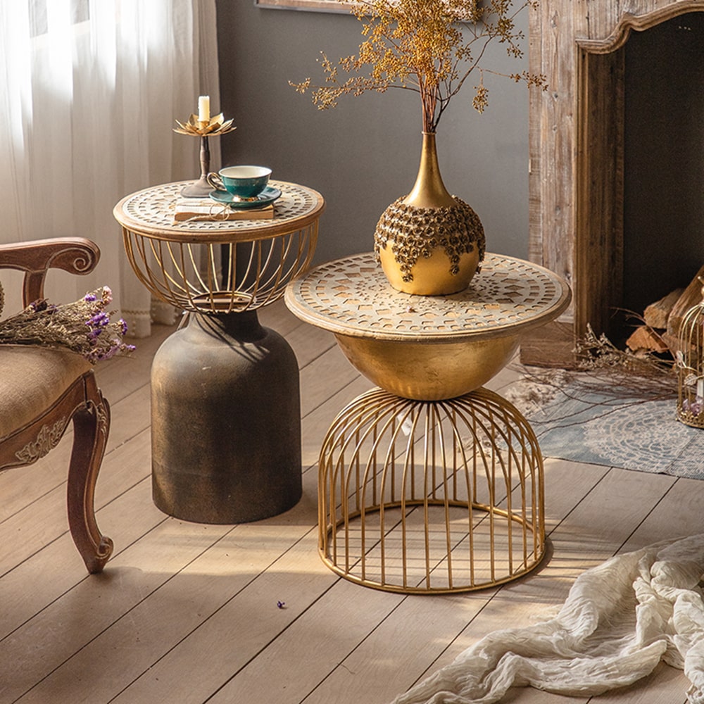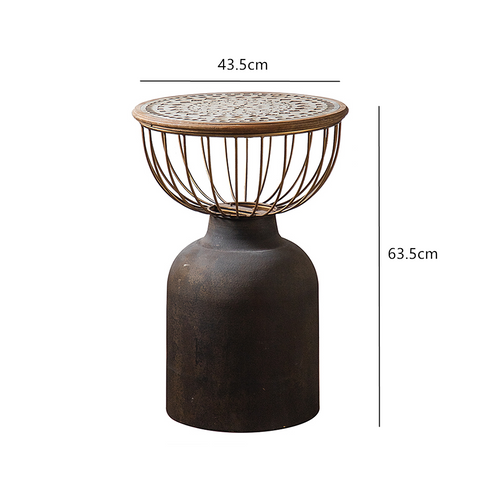 Ichigo Vintage Iron Hollow Black Round Side Table