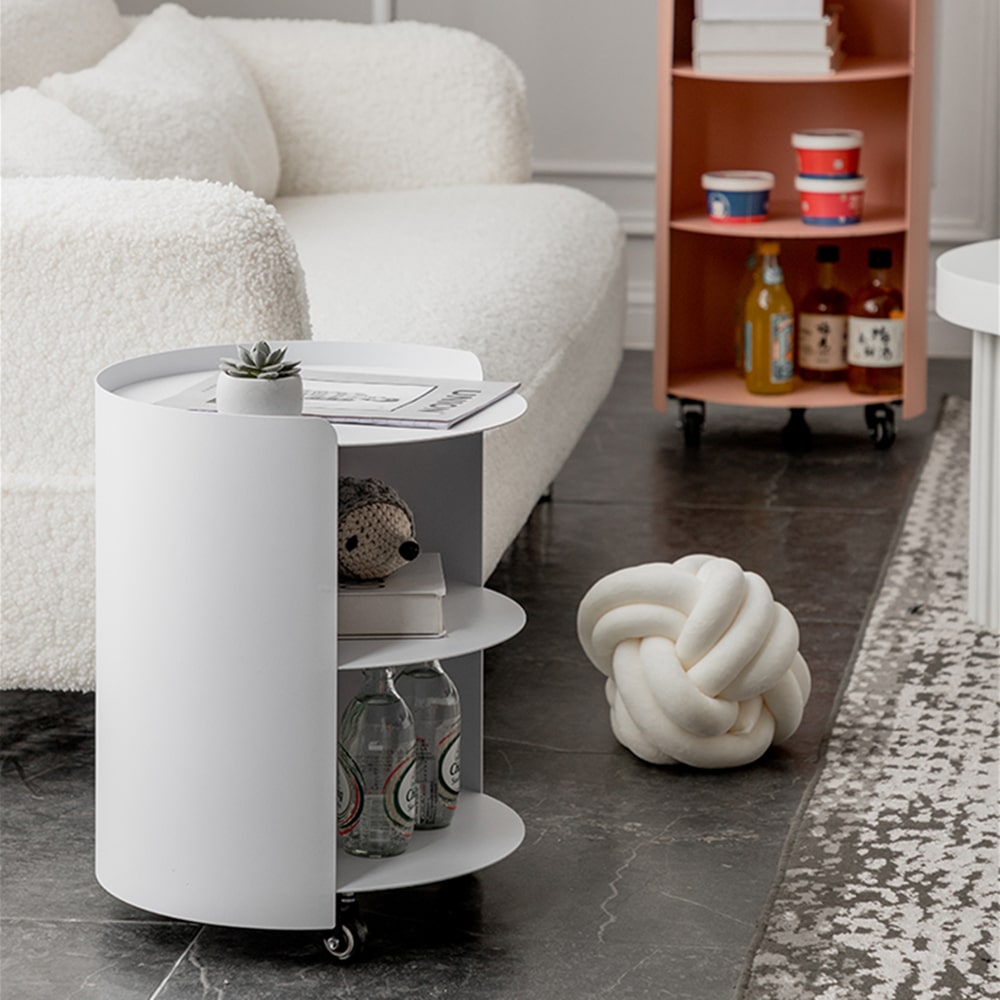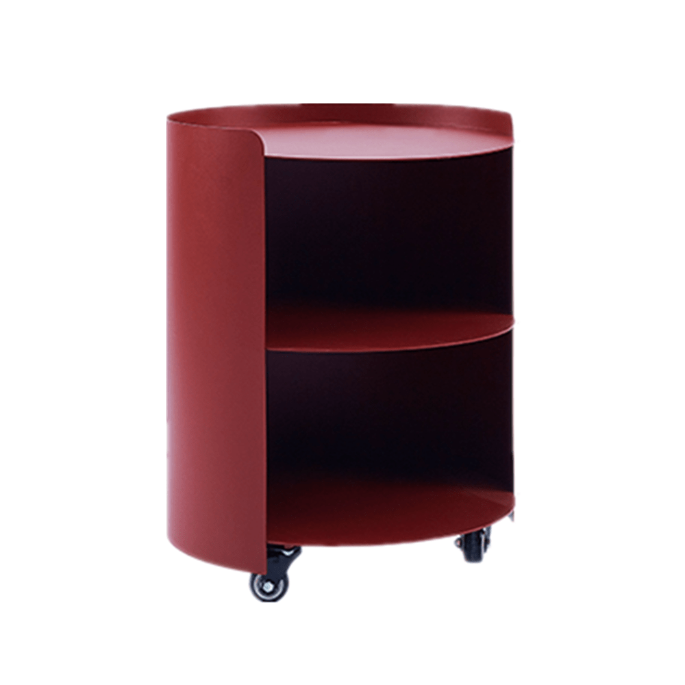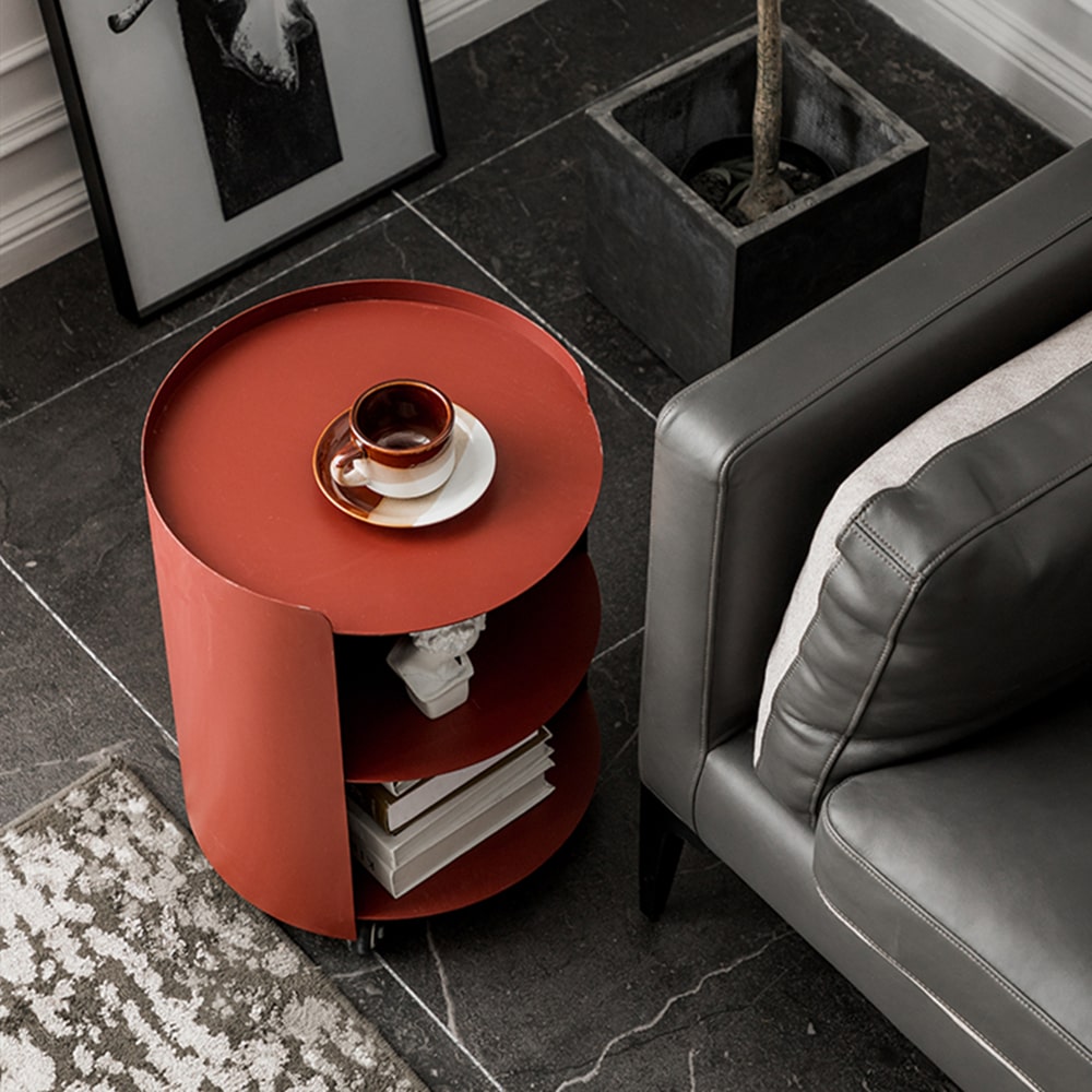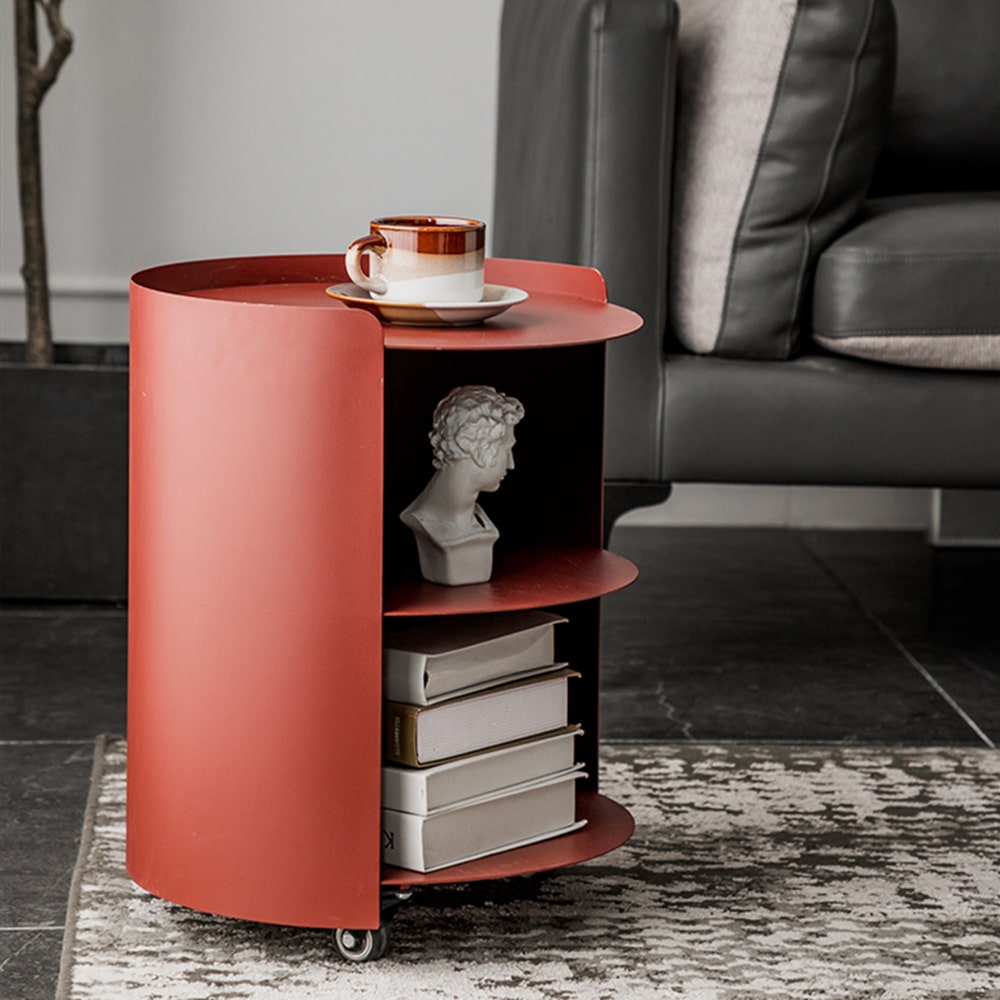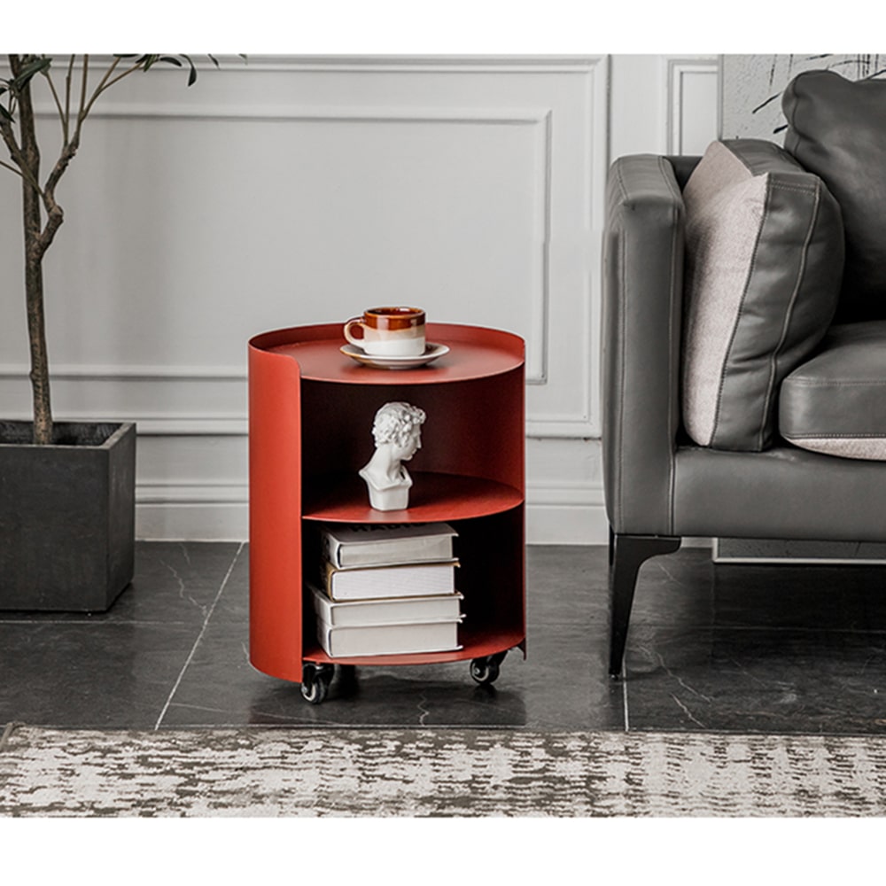 - Mobility on Four Black Wheels: Easily move this side table around with its four universal black wheels, making it versatile for any room. The red metallic finish and black wheels create a cohesive, modern look.